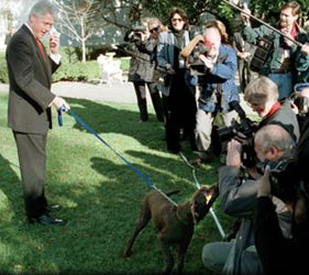 Bill Clinton, Président des USA de 1993 à 2001, possédait un chat appelé Socks et un labrador retriever marron, Buddy, qui arriva à la Maison Banche en décembre 1997.